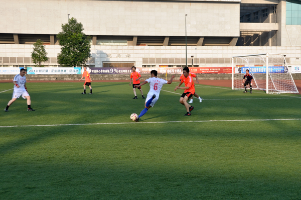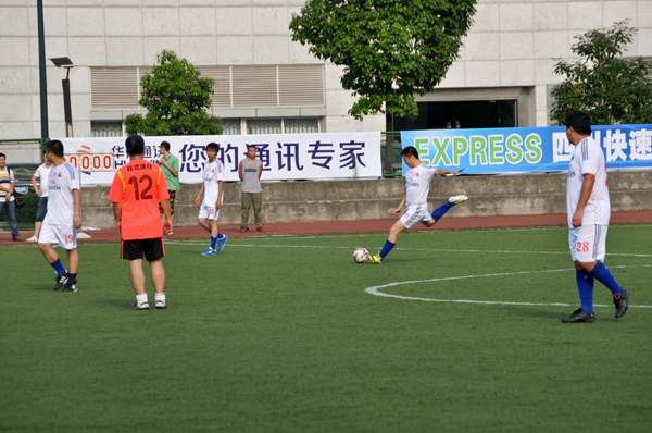 夏日炎炎,驕陽似火,但各位球員以及他們的啦啦隊卻精神飽滿、熱情洋溢。比賽一開始,雙方球員就展開了激烈的拼搶,建行先進一球,但是川開集團球員毫不示弱,奮起直追,以2:2扳平比分。下半場,雙方展現(xiàn)細膩的腳法、默契的配合、縝密的戰(zhàn)術及隊形部署,使比賽進入白熱化階段,同時在場邊的啦啦隊也是奮力吶喊助威,為健兒們獻上一次又一次的鼓舞與喝彩。雙方一度將比分扳成3:3平,由于川開后衛(wèi)防守隊員解圍失誤,自擺烏龍,終場哨響時,建行以4:3贏得了這場比賽。
