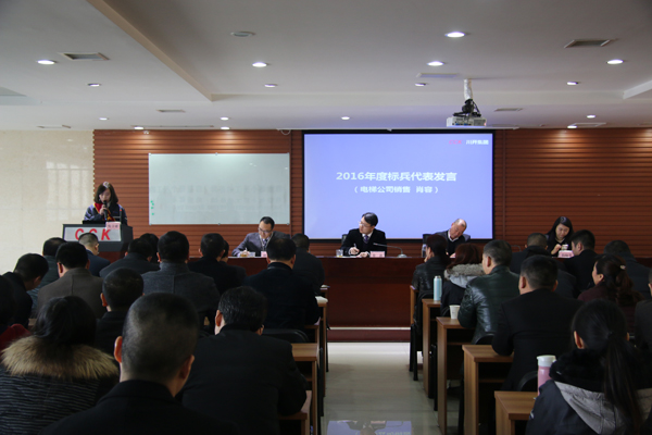電梯公司銷售肖容代表全體獲獎標兵發(fā)言。