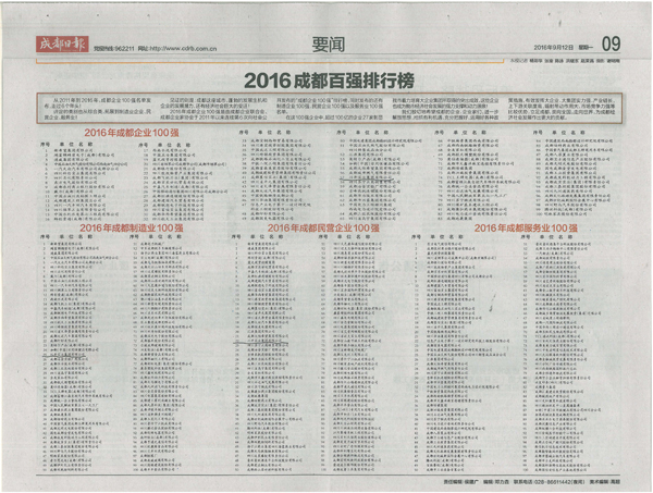 熱烈祝賀川開(kāi)集團(tuán)榮獲 2016年成都百?gòu)?qiáng)企業(yè)榮譽(yù)稱(chēng)號(hào)