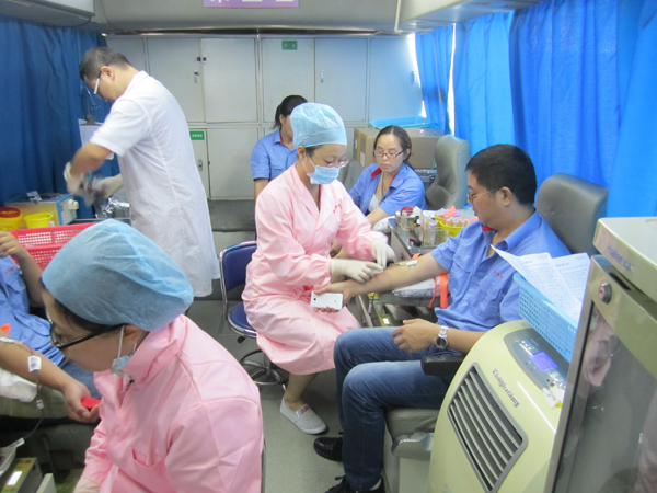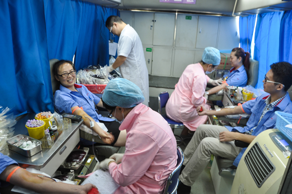 無償獻血,無尚光榮。8月16日一大早,成都市血液中心的流動采血車駛進了公司大門,集團工會組織員工參加的無償獻血活動正式拉開帷幕。集團副總裁、工會主席李懷玉加入到義務獻血者的行列,用自己的實際行動引領廣大員工,雖然天氣炎熱,但沒有阻擋大家的獻血積極性,近150名干部員工參與了獻血活動,最終獻血量達26830CC。