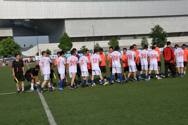 夏日炎炎,驕陽似火,但各位球員以及他們的啦啦隊卻精神飽滿、熱情洋溢。比賽一開始,雙方球員就展開了激烈的拼搶,建行先進一球,但是川開集團球員毫不示弱,奮起直追,以2:2扳平比分。下半場,雙方展現(xiàn)細膩的腳法、默契的配合、縝密的戰(zhàn)術及隊形部署,使比賽進入白熱化階段,同時在場邊的啦啦隊也是奮力吶喊助威,為健兒們獻上一次又一次的鼓舞與喝彩。雙方一度將比分扳成3:3平,由于川開后衛(wèi)防守隊員解圍失誤,自擺烏龍,終場哨響時,建行以4:3贏得了這場比賽。