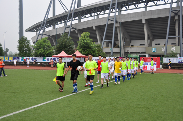 7月11日,川開集團足球隊對陣瑞迪機械足球隊,開場不到5分鐘,川開隊以一個巧妙地配合先下一城進球得分,上半場,川開隊以7比0遙遙領先。下半場,瑞迪機械進行了戰(zhàn)術和人員調(diào)整,攻勢有所加強,但川開隊憑借中場的逼搶以及后衛(wèi)的果斷處置,挫敗了瑞迪機械的一波又一波攻擊,并利用了幾次反攻機會令瑞迪機械門前險象環(huán)生,雖然比賽結果已無懸念,但瑞迪機械依然沒有放棄,終于得到一個前場任意球的機會,瑞迪的球員勢大力沉的直接射門,打破進球僵局,整場比賽川開球隊僅失1球,川開隊最終以9:1的大比分贏得了這場比賽,以小組賽第一名賽績挺進了八強。