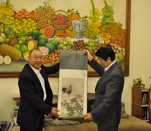 (柬副總理索安閣下受簡興福先生贈予名貴四川蜀錦)