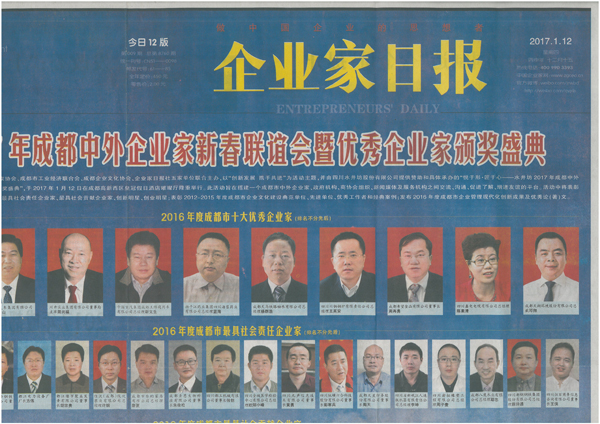 簡(jiǎn)興福主席 榮獲“2016年度成都市十大優(yōu)秀企業(yè)家”的稱號(hào)