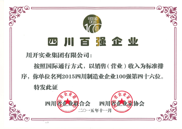 熱烈祝賀川開集團榮獲 2015年四川百強企業(yè)等榮譽稱號