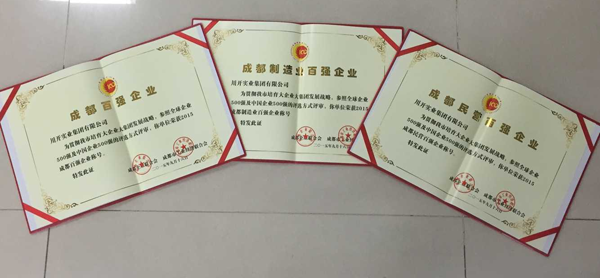從成都企業(yè)聯(lián)合會(huì)、成都市工業(yè)經(jīng)濟(jì)聯(lián)合會(huì)主辦的“2015成都百強(qiáng)企業(yè)發(fā)布暨企業(yè)發(fā)展高峰論壇”獲悉,我集團(tuán)榮獲“2015年成都企業(yè)100強(qiáng)企業(yè)”(排名66位)、“2015年成都制造業(yè)100強(qiáng)”(排名29位)、“2015年成都民營(yíng)企業(yè)100強(qiáng)”(排名26位)榮譽(yù)稱號(hào)。