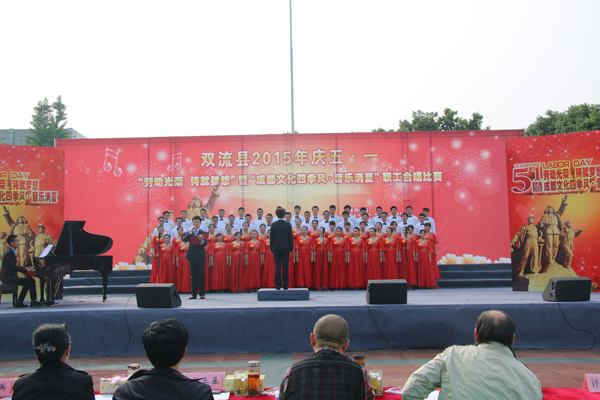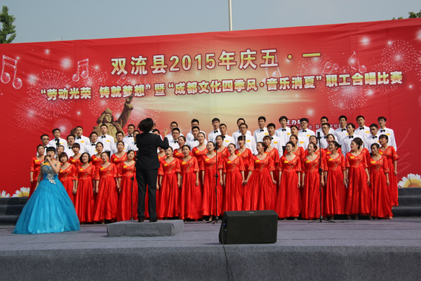 2015年2月24日,一個陽光明媚的日子,在朝霞的伴隨下,集團(tuán)公司66名員工組成的合唱隊分乘兩輛大巴車向雙流人民廣場進(jìn)發(fā),前往參加雙流縣2015年慶五·一“勞動光榮 鑄就夢想”暨“成都文化四季風(fēng)·音樂消夏”職工合唱比賽, 雖然合唱隊員們早上6點多就到公司做準(zhǔn)備工作,但大家一個個精神飽滿、意氣風(fēng)發(fā),都把能夠代表集團(tuán)以及協(xié)和街道參加比賽視作個人榮譽,滿懷奪冠夢想踏上征程。